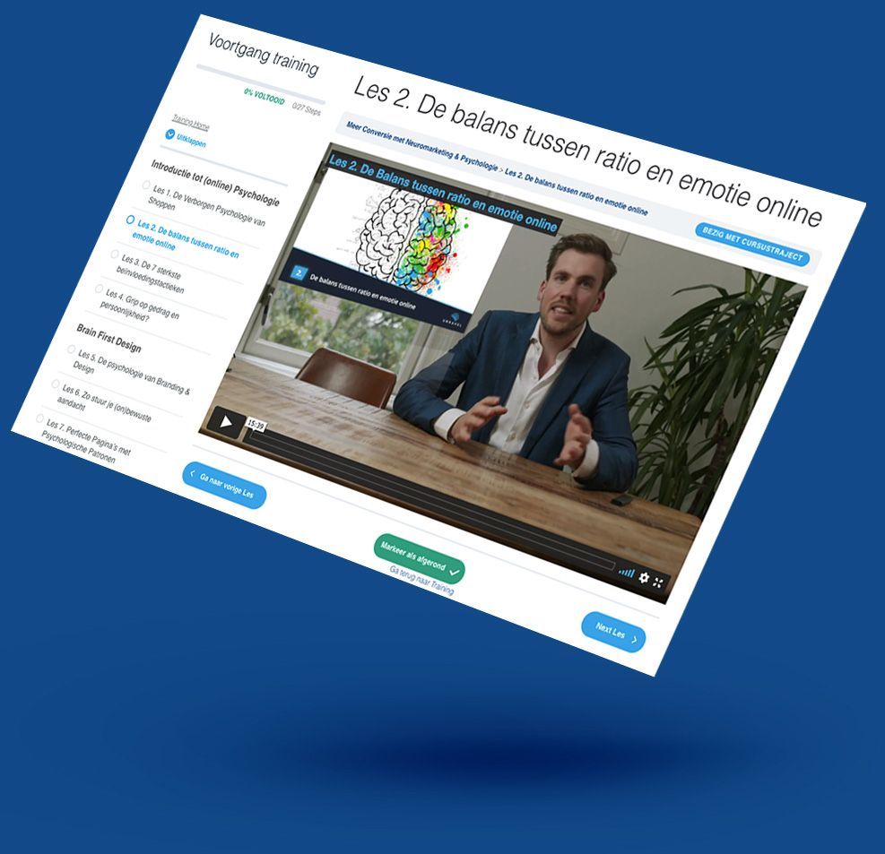 In 18 lessen – elk met video’s van TED talk lengte (20 min) – bijten we ons vast in alles rondom neuromarketing en conversieoptimalisatie